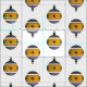 Motif à base de décorations de sapins de Noël, violet et jaune coloré. Ce design est également disponible dans d'autres versions de couleurs, certaines avec une touche de plus en plus saisonnière.