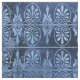 Ce design d'inspiration Art Déco et grecque présente un arrière - plan bleu dépaysant avec des ventilateurs et des rouleaux de couleur bleu clair orné.