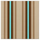 Tissu dans un motif moderne rayé du milieu du siècle dans les tons clair tan / beige, moyen tan chameau, et chocolat foncé, accentué bleu turquoise / aqua