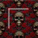 Les crânes décorés sont entourés de roses rouges et de feuillage noir sur ce magnifique tissu gothique. Parfait pour les vêtements et les courtepointes.