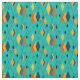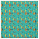 Ce tissu a une conception atomique moderne du milieu du siècle de diamants, et des starbursts sur un champ de turquoise.