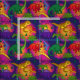 Tissu de dinosaures pour enfants multicolores avec tyrannosaurus rex, pterodactyl, stegosaurus, spinosaurus, brontosaurus et tricerotops. Un design coloré en bleu, orange, jaune, violet, rose et vert