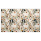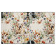 Dog lover's sewing and craft fabric. Cream color background with yellow labs, Bernese mountain dogs, and cute Corgis who are surrounded by stems of colorful wildflowers. The pattern image is large in this design.