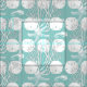 Tissu blanc et vert mer clair avec imprimé sous la mer. Dollars de sable blanc, chevaux de mer, étoiles de mer et corail font un motif nautique sans soudure. Changez la couleur de l'arrière - plan en n'importe quelle, en utilisant le bouton "customiser".