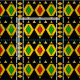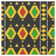 Magnifique tissu de conception géométrique africaine, modelé avec des diamants rouges, jaunes et verts sur le noir