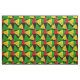 Tissu à motif feuille couleur rasta rouge vif, vert et or sur noir