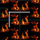 Cette conception de tissu de beaux-arts dépeint un motif abstrait de répétition de l'énergie du feu dans un fourneau brûlant en bois. L'orange, l'or et les flammes jaunes apparaissent en tant que caractères joyeux de danse. Ils sont placés par un arrière - plan noir.
