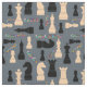 Images silhouettes d'échiquiers de couleur noire et beige. Mots décoratifs colorés : échecs, chèque, coéquipier, jeu, mouvement, champion, gagnant, penser. Vous pouvez modifier la couleur de l'arrière - plan. Amusant et élégant tissu design d'échecs.