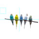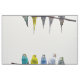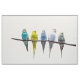 Row of budgie birds on a tree branch