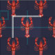Les écrevisses de Cajun d'aquarelle de la Louisiane ont modelé le tissu avec un arrière - plan coloré foncé de bleu marine.