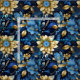Tissu Elégant Bleu & Or Boho Chic Motif Floral