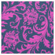 Tissu Élégant Damas Floraux Bleu et Rose Chaud