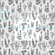 Tissu Élégant Motif de jardin de plantes blanches noires