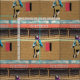 Baril de cow-girl de rodéo de Cheyenne emballant le tissu. Arène de rodéo avec le texte de Cheyenne sur le toit et un coureur de baril. Veuillez noter que cette conception va voir texturisé (voyez la fin) que ce fait partie d'une collection avec différents événements de rodéo avec cet même arrière - plan d'arène de rodéo.