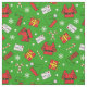 Tissu vert émeraude festif avec un motif de bottes elfes rouges de Noël mignonnes, casquettes et tunique avec sucres de canne et flocons de neige