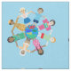 Les enfants du monde tenant la main debout dans un cercle sur un globe avec les mots "L'amour fait de ce monde une famille"