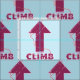 Un design typographique qui a le mot "montée" et une flèche peignant vers le haut. Une corde couchée se tisse entre les lettres du mot "escalade". Pour toute personne qui aime le sport ou l'escalade commerciale.
