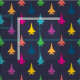 Un motif de jolis aigles de frappe couleur arc-en-ciel sur bleu marine foncé sont une façon mignonne et amusante d'inclure des avions de chasse à réaction dans vos projets d'artisanat.