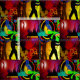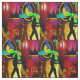 Scène de club de danse avec silhouettes de danseuse et le mot party dispersé autour de l'image imprimée sur le tissu.