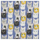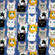 Visages de chat. Six visages séparés. Un chat gris, un noir, un orange, deux blancs et un blanc au museau noir. La couleur des yeux va du bleu au vert. L'Arrière - plan est un bleu moyen muet.
