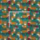 Créez des cadeaux de Noël et diffusez des réjouissances avec ce mignon tissu à motifs qui présente des illustrations d'adorables renards festifs portant des chapeaux de Père Noël et des couronnes de Noël et portant des ornements et des bas de Noël. Les illustrations sont dressées contre un arrière - plan turquoise foncé et agrémentées de feuilles saints et de baies, d'ornements d'arbres et de points de flocons de neige blancs.
