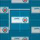 Illustration d'une patinoire de curling, appelée feuille de curling. Cette conception comporte un diagramme qui explique une terminologie commune en matière de refroidissement. Comprend la courbure et la garde de maison.