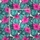 Tissu Feuilles de Monstera et Hibiscus, rose Turquoise s