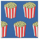 Tissu cool à thème avec de mignonnes boîtes de pop-corn avec du maïs soufflé jaune dans un emballage rayé rouge et blanc. Joli arrière - plan bleu pour une nuit avec les étoiles. Faites des rideaux ou des vêtements cool avec ce motif amusant.
