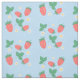 Un design de tissu qui dispose d'un motif délicieux et ludique de mini fraises éparpillées sur un arrière - plan doux bleu ciel. Les fraises sont rendues dans un rouge vif avec des feuilles verts, et elles sont entrecoupées de petites fleurs délicates, blanches ou jaunes clairs, ce qui ajoute au charme. L'ensemble est gai, frais et sucré, ce qui en fait l'endroit idéal pour les vêtements, la literie ou la crèche.