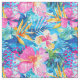 Un motif sans soudure avec des fleurs hawaïennes comme des hibiscus, des oiseaux de paradis et des orchidées dans un style d'aquarelle dynamique. Le design capte la beauté luxuriante et exotique de la flore tropicale avec des couleurs riches et vives et la fluidité artistique.