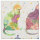 Un tissu de chat coloré avec silhouettes de chat en profil peint avec des motifs de fleurs aquarelles dans une variété de couleurs avec une aquarelle et tache arrière - plan.