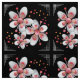 Ce TISSU fait sur commande comportant une peinture numérique originale par Leslie Sigal Javorek est un grand choix pour votre art déco re-décorant des plans ! Ces Apple de fantaisie fleurissent des fleurs ont des stamens roses et un peu de fard à joues sur les pétales blancs mous qui sont augmentés par le contraste de l'arrière - plan noir. Les coins classiques d'art déco des lignes blanches minces unifie le thème. L'armure de polyester montrée offre les noirs les plus noirs et est plus adaptée pour la tapisserie d'ameublement. Voir les chacune des 7 options de tissu pour d'autres usages.