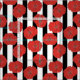 Tissu Fleurs de pavot rouges avec des rayures noires et