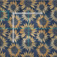 Tissu Fleurs de soleil jaunes Abstraites sur bleu