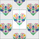 Beau motif folklorique inspiré de l'art populaire polonais de Lowicz. Composition en forme de coeur sur arrière - plan blanc