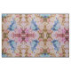 Tissu Fleurs vintages bleues en pastel roses rustiques