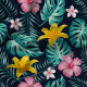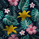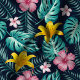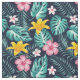 Tissu Floral Marine Tropical Et Hibiscus Rose