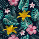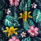 Tissu Fleuve Tropical Marine Et Hibiscus Rose