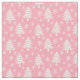 Cette étoffe de Noël rose et blanc est ornée d'un arbre de Noël géant et d'un motif de flocon de neige.