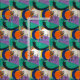 Un motif floral abstrait et amusant, dessiné à la main, dans des tons vifs de turquoise, violet orange et bleu.