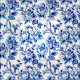 Ce tissu présente un design floral blanc et bleu.