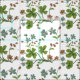 Ce motif répétitif de style vintage présente quatre feuilles de trèfle vertes ainsi que des fleurs roses et bleues claires.