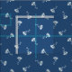 Une belle étoffe à motifs floraux en bleu foncé avec des tiges de fleurs blanches dessinées à la main.
