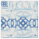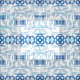 Motif de Chinoiserie Bleu et Blanc avec Fleurs et Feuilles géométriques et botaniques.