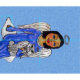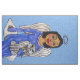 Tissu Folk Art Angel Bleu yeux Chat blanc sur Cloud