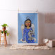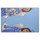 Ce tissu personnalisé de la cour a un joli ange d'art populaire aux yeux bleu vif portant une robe bleue avec des étoiles blanches assis sur un nuage blanc tenant son chat ange blanc et gris. Tous deux ont des halos en argent sur l'arrière - plan bleu ciel.