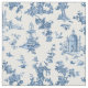 Adaptation harmonieuse historique d'un motif textile John Munn anglais gravé toile de jouy vers 1770 avec un monument classique à Shakespeare, fontaines, oiseaux et fleurs exotiques. Bleu sur arrière - plan blanc.
