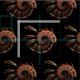 Une image fractale multicolore (rouge, jaune et orange) en spirale, ressemblant à un oiseau ou à un dragon plumé, sur un arrière - plan sombre.