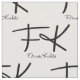 This artistic fabric design features a unique and sophisticated repeating pattern based on Frida Kahlo's iconic initials and signature. The stylized "FK" monogram is prominently displayed in a bold, calligraphic style, with her authentic full signature elegantly placed beneath each initial. The minimalist black design stands out beautifully against a clean, light background, creating a chic and artistic tribute to her enduring legacy. This pattern offers a subtle yet powerful way to express admiration for the legendary artist. © 2025 Frida Kahlo Corporation. All Rights Reserved.