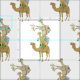 Un dessin humoristique amusant avec trois chameaux perdus dans le désert. Ils se tiennent les uns sur les autres pour avoir une bonne vue et une carte.